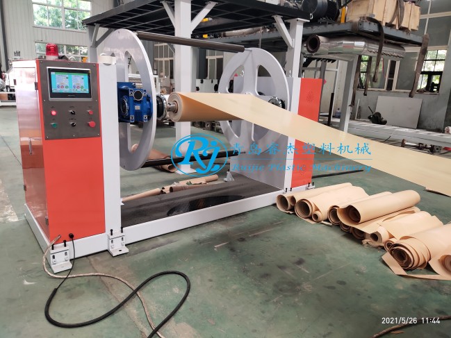 此設(shè)備是原料經(jīng)自動真空上料機把原料輸送到擠出機,有擠出機加熱系統(tǒng)把原料融化到一定溫度通過模具成型。真空上料,平雙擠出機,溫度控制系統(tǒng),換網(wǎng)器,計量泵,模具,三輥,模溫機,冷卻托架,廢邊切割,牽引機,裁斷機,收卷機。